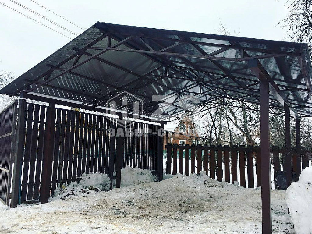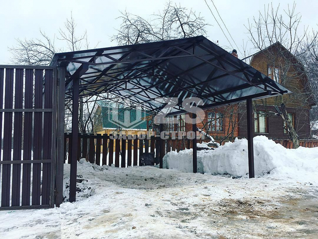 Стандартные характеристики каркаса навеса: столбы 80х80х3мм.