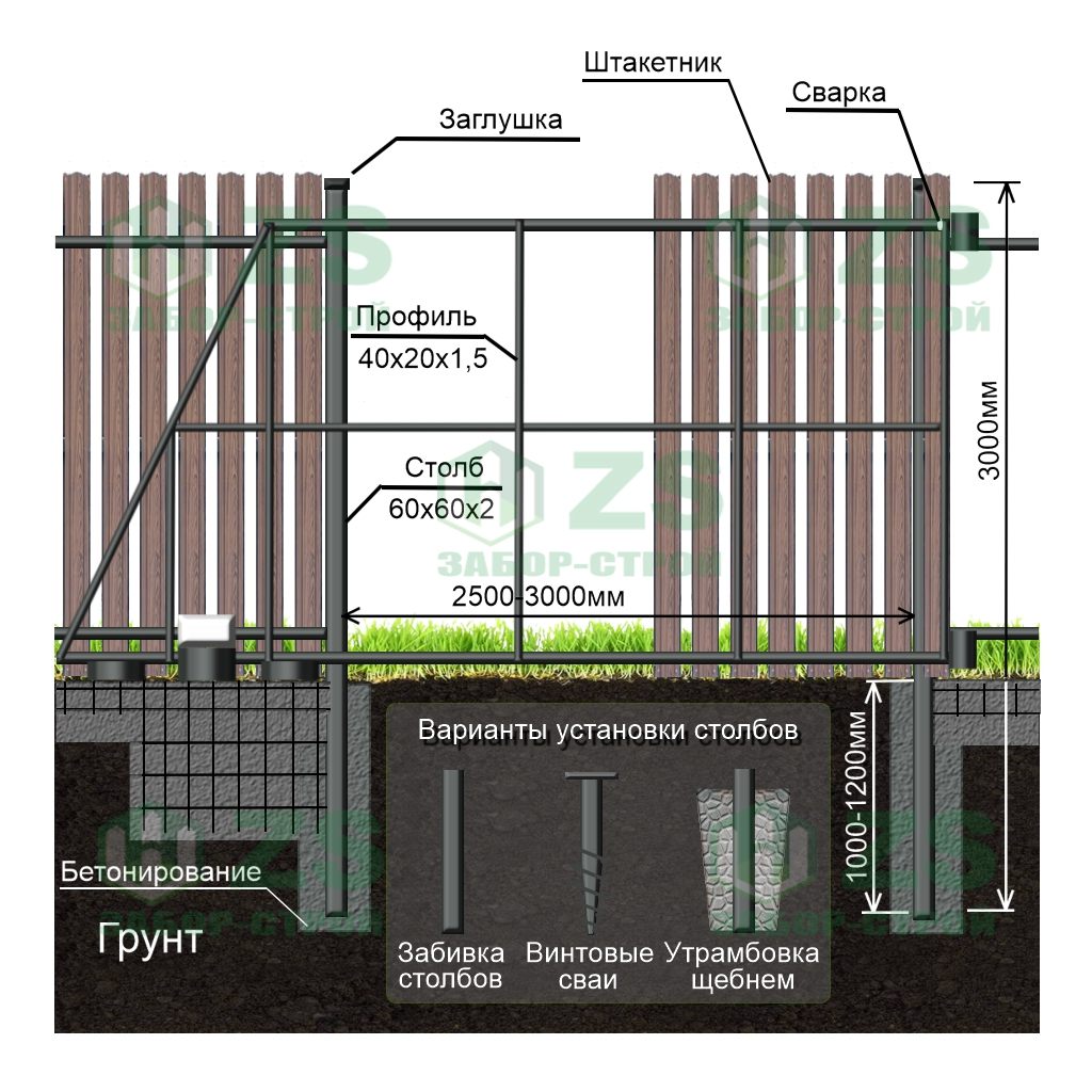 Конструкция откатных ворот из евроштакетника: