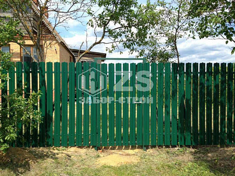- Забор на забивных столбах из евроштакетника 35 метров