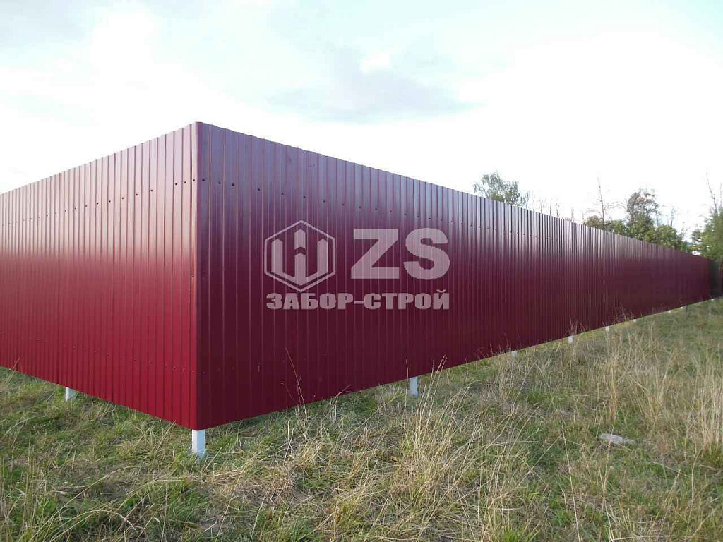 - Забор на забивных столбах из профнастила 50 метров