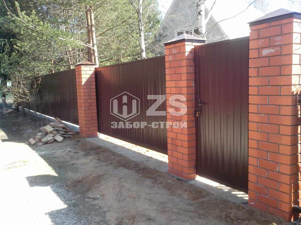 - Забор с кирпичными столбами